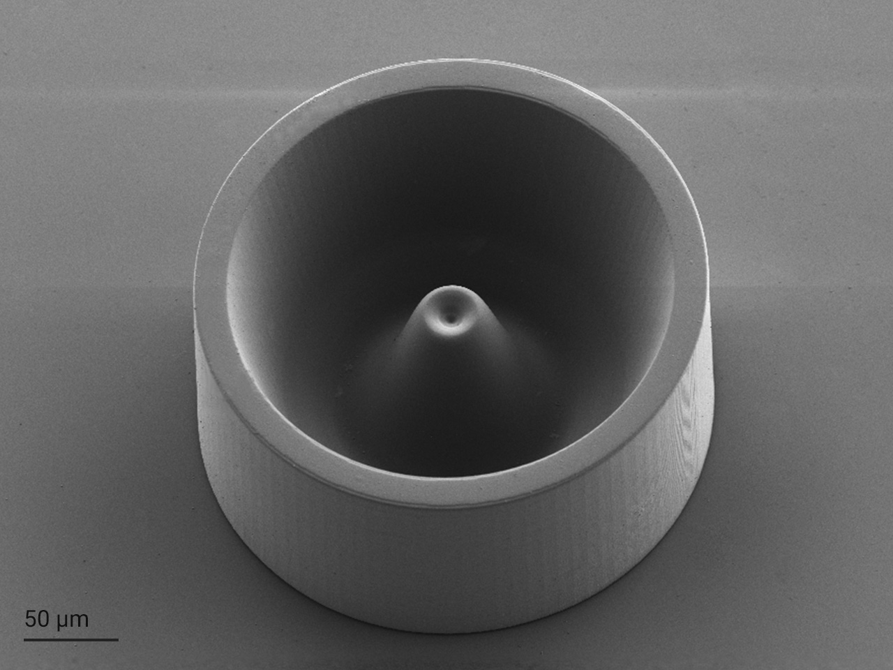 微米级增材制造能够突破传统微纳光学设计的极限,借助双光子聚合技术的优秀性能,可以轻松实现球形,非球形,自由曲面或复杂3D微纳光学元件制作,并具备出色的光学质量表面和形状精度。